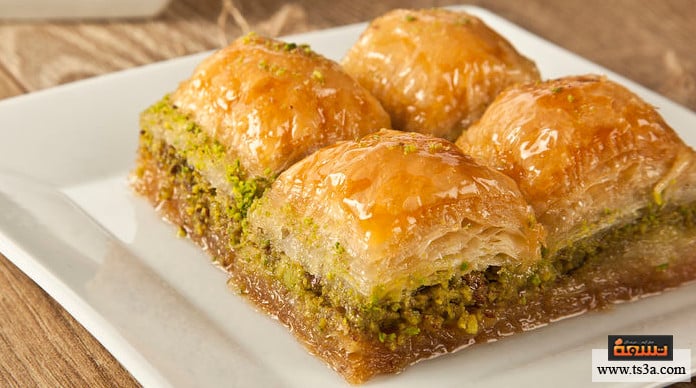 في البداية يتم عمل المهلبية من خلال خلط كوب ونصف من الحليب مع نشا الذرة والسكر حيث تُقلب المكونات جيداً ثم تُوضع على النار وتقلب لعدة دقائق حتى نحصل على قوام كريمي نوعاً ما ثم توضع جانباً، وفيما بعد يتم إحضار صينية كبيرة على شكل مستطيل ويوضع بها ملعقة من الزيت مع إذابة الزبدة قليلاً بوضعها على النار أو داخل الميكروويف لعدة دقائق، حيث نُحضر ورقة من جلاش متماسك ونضعها في الصينية ثم تدهن القليل من الزبدة بواسطة فرشاة سيليكون لكي يتم توزيعها في مُختلف الجوانب، وهكذا تُكرر تلك الخطوة مع 10 ورقات فقط، ثم نقوم بفرد كمية المهلبية بالتساوي في جميع الأركان ونضع باقي الأوراق عليها مع وضع الزبدة بين كل طبقة وأخرى إلى أن تنتهي بالكامل، ثم نقوم بتقطيعه على شكل مثلثات أو مربعات صغيرة وسكب كمية قليلة من الحليب، حيث تدخل الفرن لمدة عشرين دقيقة حتى تنضج تماماً ومن ثم يتم وضع الشربات عليها من الخارج.