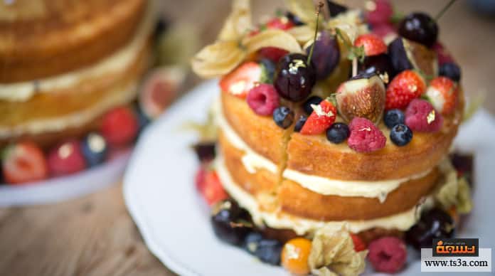- الآن تصير الكعكة قابلة للتقديم ولكن يُفَضَّل وضعها قليلاً في الثلاجة قبل تقسيمها حتى تتماسك قليلاً.